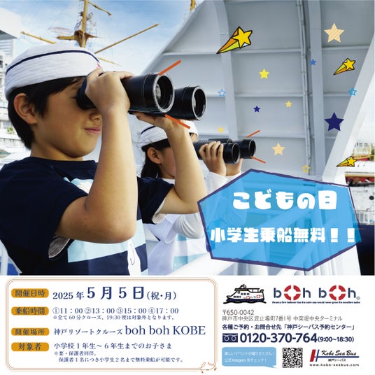 【2025年5月5日(月・祝) こどもの日小学生乗船無料キャンペーン】ゴールデンウィークはboh boh KOBE船上で家族と一緒にあそboh boh(遊ぼう)♪