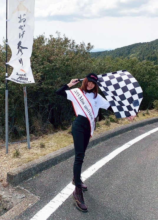 スタート・ゴールフラッグは、ご実家が三重県鳥羽市答志島の2015ミス・ユニバース三重県代表、2025おかげ参りツーリングラリーアンバサダーの岩本慶さんが担当いたします。