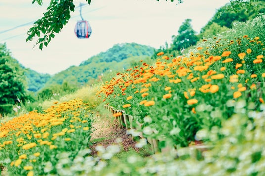 ガーデンの詳細を見る「風の丘フラワー園」カモミールとポットマリーゴールド一面の花畑
