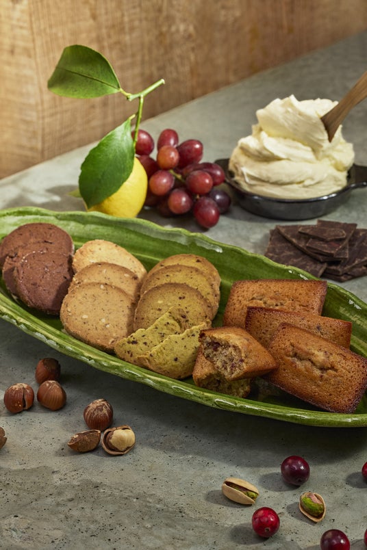 「おみやげグランプリ2024」にて総合グランプリを受賞した『果実とバターのサブレ』は、ビターなレモンピールと香ばしいヘーゼルナッツに、芳醇なバターを合わせた『ヘーゼルナッツ シトロンバター』、ラム酒に漬け込んだレーズンと、香り高いココアパウダーを芳醇なバターが包み込み、まろやかに香ばしく仕上げた『ショコラ ラムレーズンバター』、真っ赤で甘酸っぱいクランベリーの実と、コクのあるピスタチオを芳醇なバターと合わせ、丁寧にさっくりと焼き上げた『ピスタチオ クランベリーバター』の3種を1箱に詰め合わせました。