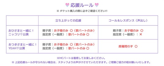 ※おつきさまと一緒に!YEAH(ハート)公演:親子席は2階席エリアになります。
