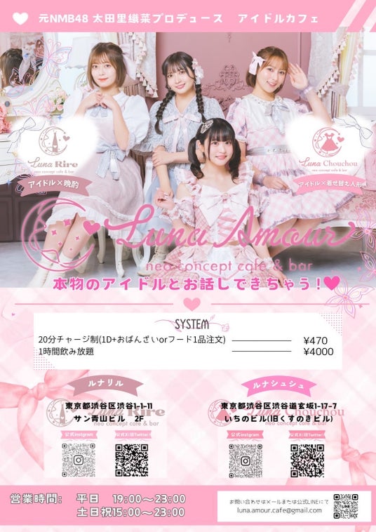 元NMB48 太田里織菜がプロデュースする晩酌コンセプトのアイドルカフェ「Luna Amour Group」が