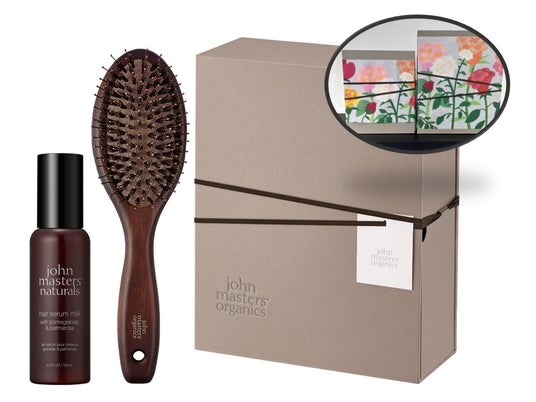 「john masters organics」hair serum milk gift(brush)コンボパドルブラシセット 8,250円、コンボパドルブラシ ミニセット 7,700円※お選びいただくブラシのサイズで価格が変わります。【内容:P&Pヘアセラムミルク(ポメグラネート&パルマローザ)100mL(現品)、コンボパドルブラシまたはコンボパドルブラシ ミニ、ギフトボックス】