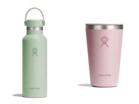 「Hydro Flask」保冷・保温の両機能を持つ全断熱ボトルとタンブラー。(左から)HYDRATION 18oz STANDARD MOUTH(532ml) 4,950円、DRINKWARE 16oz ALL AROUND TUMBLER(473ml) 3,850円