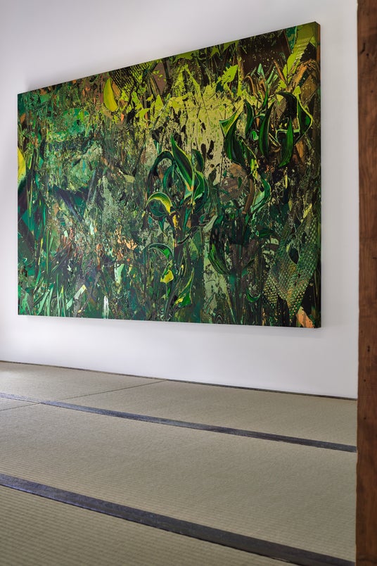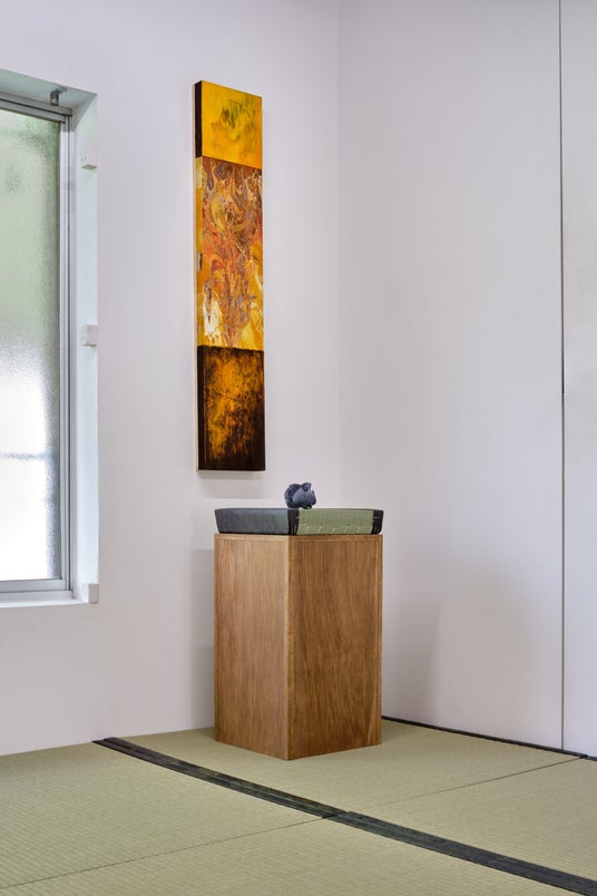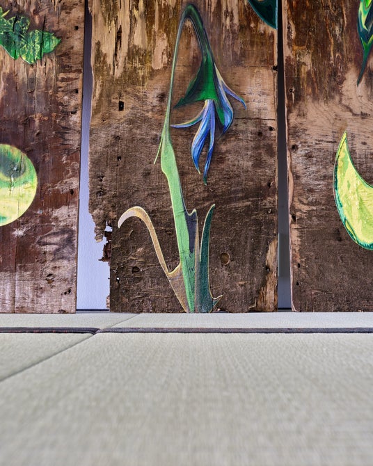展示では、観客が実際に畳の上に座ったり、寝転んだりすることで、絵画作品との距離が物理的・感覚的に近づく構成を採用。天然い草の香りや手触りといった身体的感覚とともに作品をお楽しみいただけます。