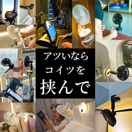 どこでも挟める・どこでも引っ付くをコンセプトに設計された小型扇風機。照明機能も付いており、デスク・寝室・ベビーカー・アウトドアなど幅広い用途でこの夏にピッタリの新製品