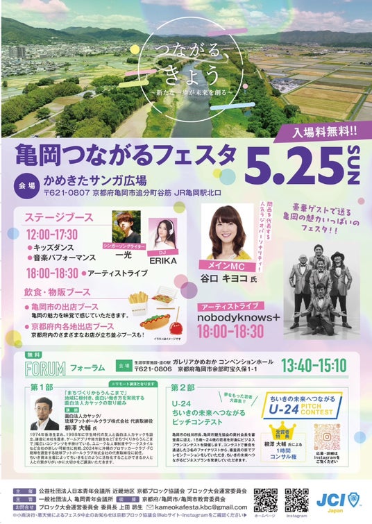 2025年5月25日(日)、京都府亀岡市にて地域の魅力とつながりを再発見し、未来への希望を育むイベント『亀岡つながるフェスタ』が開催されます。