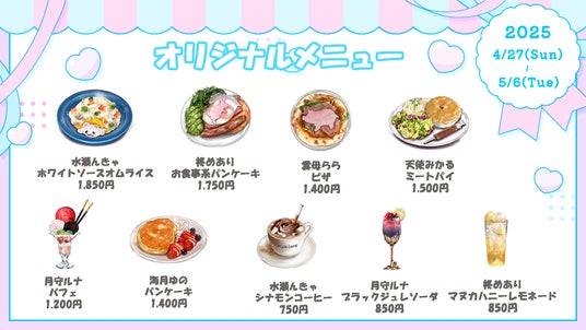 本コラボカフェでは、プロジェクトに所属するライバーたちの等身大パネルや、彼女たちがプロデュースしたオリジナルメニュー、コラボカフェ限定グッズなど、ファンの皆さまにお楽しみいただけるコンテンツをご用意しております。