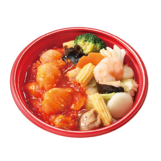 人気のそう菜、エビチリと八宝菜が一度に味わえる贅沢丼。