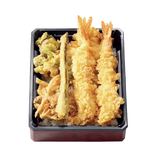 大海老2尾と小さいかき揚げ3個が入った天丼。