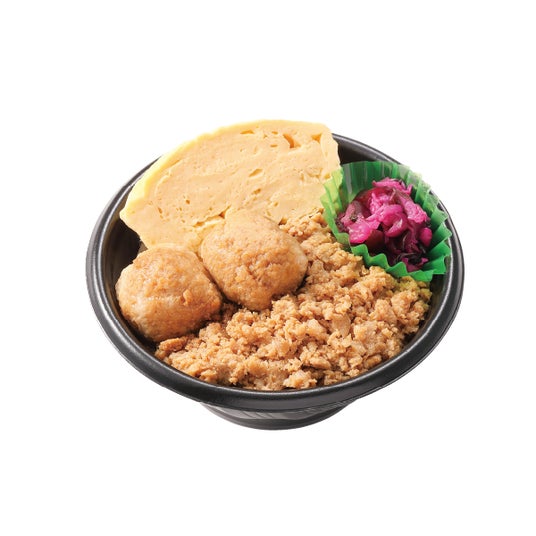 低温調理で柔らかく炊き上げた鶏そぼろ、つくね、だし巻玉子が楽しめる丼。