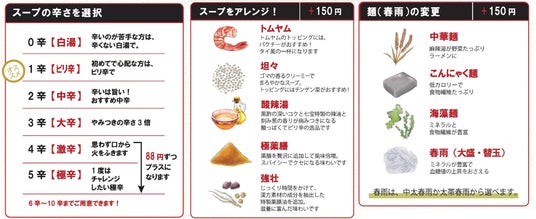 スープの辛さは0から3辛をベースにご用意。お好みで10辛までご用意!