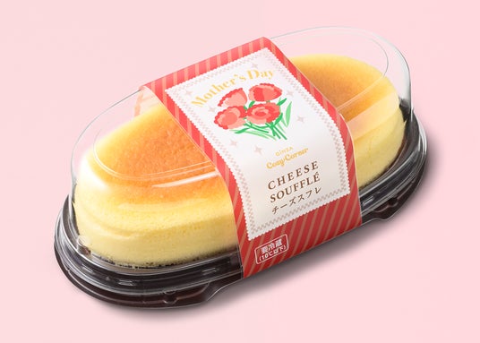 どれにしようか選ぶのも楽しいベリーのプチケーキの詰合せや、クリームで華やかな花束をイメージしたプチデコレーションケーキ。カーネーションのイラストをデザインしたフイルムでラッピングした“しっとり、ふわシュワッ”食感が人気のチーズスフレなど、全5種をラインアップ。