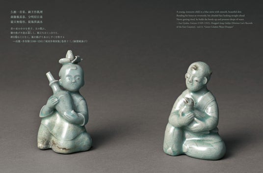 重要美術品 (左)青磁彫刻 童女形水滴 (高麗・12世紀)大阪市立東洋陶磁美術館 (住友グループ寄贈/安宅コレクション)(右)青磁彫刻 童子形水滴 (高麗・12世紀)大阪市立東洋陶磁美術館