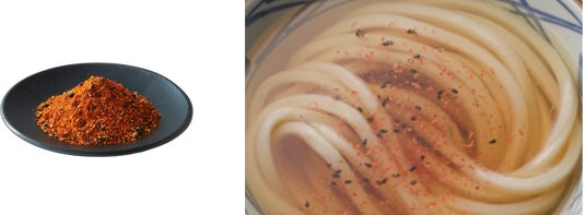 香七味は、打ち立て・生のうどんと「だし」に合うようにブレンドされた丸亀製麺特製です。ピリッとした辛みと柑橘のさわやかな香りを、ぜひお気に入りのうどんとご一緒に。