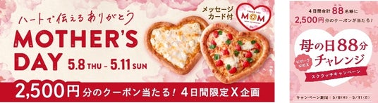 ハートで伝えるありがとう ピザーラのハートピザが4日間限定復活!! 公式X限定で「母の日88分チャレンジ」スクラッチキャンペーンも!!