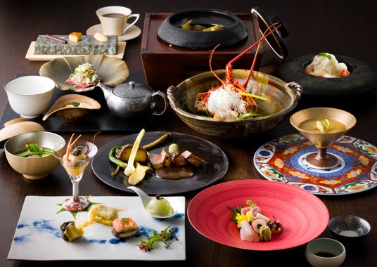 お食事は、「和食」をベースとした料理長オリジナルの創作料理を、御浜岬の入り江と青い海越しの富士山を一望する絶景のお食事処でお楽しみいただけます。この度、開業時のお食事メニューが決定。自家農園で採れた無農薬・無消毒野菜、直接契約している漁船からの仕入れによる新鮮魚介をふんだんに使用した創作料理では、地元戸田の高級食材であるキンメダイやウニ、アワビ、静岡ブランド黒毛和牛「静岡そだち」に加え、迫力満点な伊勢海老などもお楽しみいただけます。お食事処では、高級ワインセラーを導入し、地元の新鮮食材をふんだんに使用した絶品創作料理と各種ワインとのマリアージュをお楽しみいただけます。