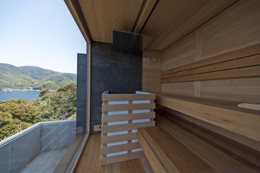 静岡の美しいロケーションに溶け込むようにデザインされた、富士青藍専用の特別な屋外サウナ。前面はすべてガラス仕様となっており、開放感あふれる空間で四季折々の自然を眺めながら贅沢なサウナ体験をお楽しみいただけます。
