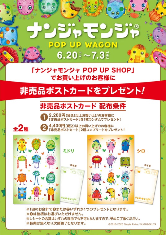 「ナンジャモンジャ POP UP WAGON」でお買い上げのお客様に、「非売品ポストカード」をプレゼントいたします。