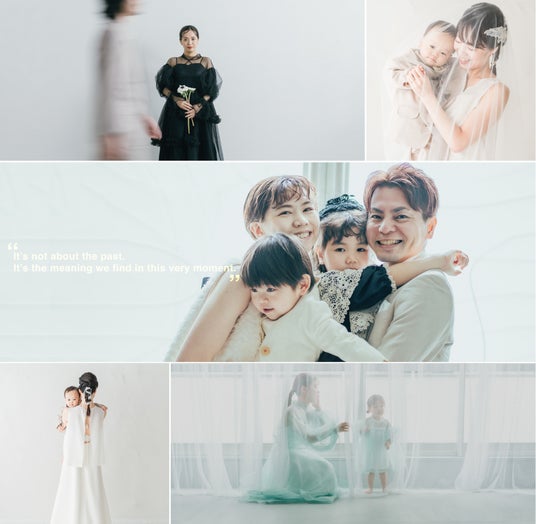 子どもを撮る場所で、今度は“ママ自身”の美しさと家族の愛情を写し出す――そんなあたたかい時間を届けたいという想いから生まれました。