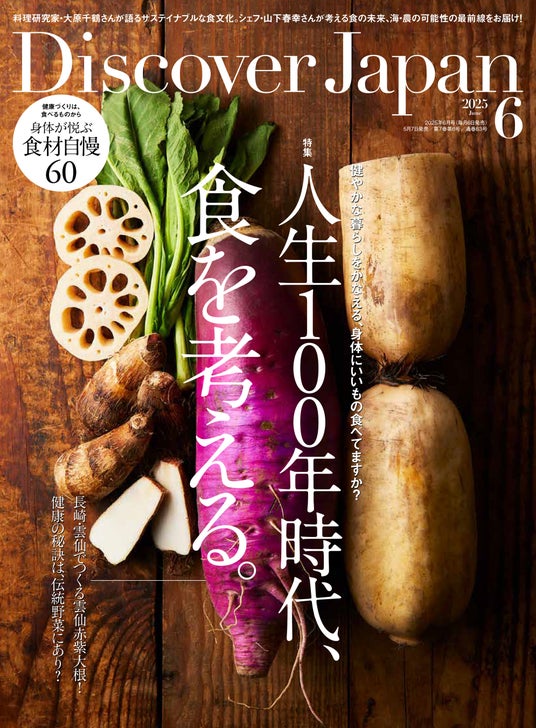 株式会社ディスカバー・ジャパンが発行する月刊誌『Discover Japan(ディスカバー・ジャパン)』2025年6月号「人生100年時代、食を考える。」が発売されました。