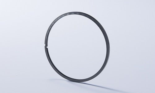 ■回転用低トルク低リークシールリング ※新製品/初展示しゅう動面に油を供給する深い溝を有するテクスチャ形状と、ハウジングへの追随性を向上させる非対称(三日月)の形状によって、低トルク・低リーク(漏れ)を両立するシールリングです。従来品と比べ、トルクは約70%、リークは約半分に低減しました。自動変速機など、油圧保持が必要な箇所に最適です。