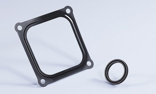 ■アルミ腐食対策用シール「RUSTECTOR」コーティング ※新製品/初展示電動車のユニットをはじめとしたアルミ筐体向けに耐塩水腐食機能を付加したガスケットです。コーティングを追加することにより、アルミハウジングの表面粗さを埋め、耐腐食性を向上させました。ラバーガスケットと、鋼板にゴムを接着した「ソフトメタル」ガスケットの2種類を提案いたします。