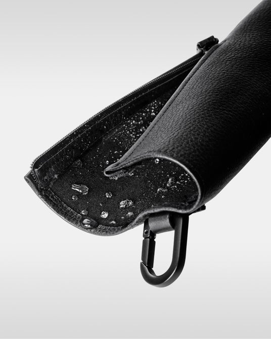 Knirpsの別注傘と合わせて使用可能なレザー製の「カラビナ付アンブレラカバー」もご用意。ブランドを代表するバッグ製品にも採用されている防水シュリンクレザーを採用。