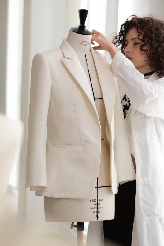 2025年5月5日、ニューヨーク。メットガラ 2025にマリア・グラツィア・キウリによるクリエイションを纏ったアンナ・サワイが登場。アンナ・サワイは、ホワイトウールとシルクのジャケットとパンツ、ホワイトのポプリンシャツを纏い、同じくホワイトのハット、グローブ、タイを合わせました。このドレスは、160時間をかけて完成に導かれます。ディオールアトリエのエクセレンスを体現したサヴォワールフェールの詳細をソフィ・カルによる撮り下ろし写真からご覧ください。