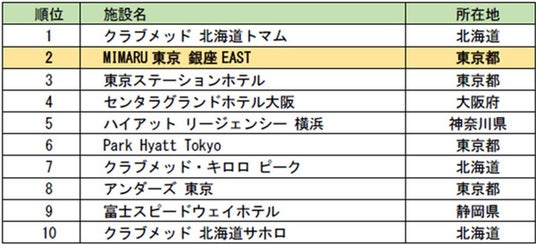 ■ 「MIMARU東京 銀座EAST」:日本のホテル人気部門 第2位にランクイン