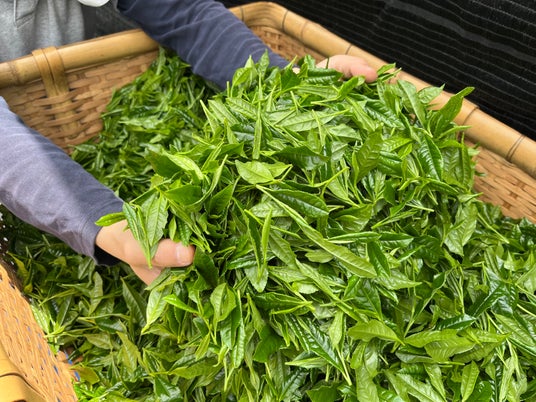 青々とした柔らかい新芽を、約100名の摘み子がひとつひとつ丁寧に手摘みしました 。摘んだ茶葉は、蒸したのち、何度も揉んで揉んで揉みこんで最後に乾燥させることで、質の良い茶葉に仕上がります 。