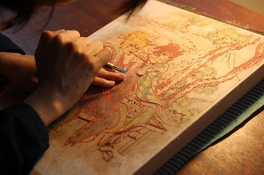 江戸時代から続く浮世絵の制作技術を受け継ぐ木版画の職人たちによって作り上げられています。