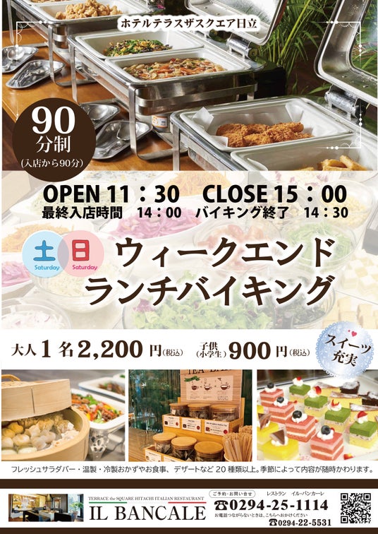 ホテルテラスザスクエア日立1Fのイタリアン レストラン「IL BANCALE (イル・バンカーレ)」は通常の営業を2022年~お休みしておりましたが、GW明け、5月7日からディナーの営業を再開いたします。開放的な雰囲気はそのままに残しております。ゆっくりくつろげるレストランとしてご利用ください。