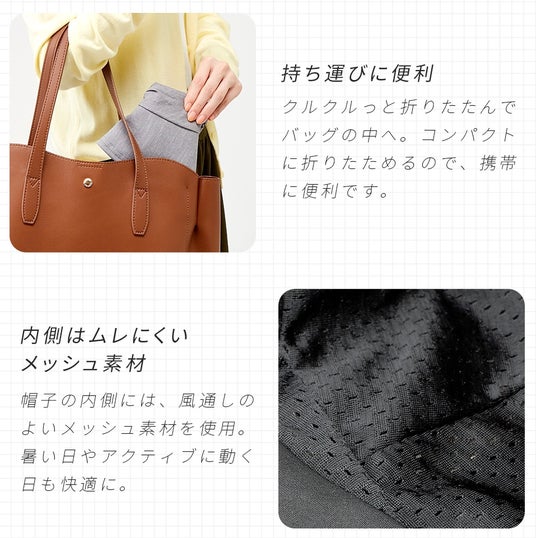 耳まですっぽりかぶれるふんわりシルエットで小顔魅せ。すっぴん隠しにも。ワイヤー入りでつばの形や角度を自由自在に変えられます。内側はムレにくいメッシュ生地。取り外し可能なあご紐付フック付き。頭囲部がゆるい場合はヒモで調節が可能です。