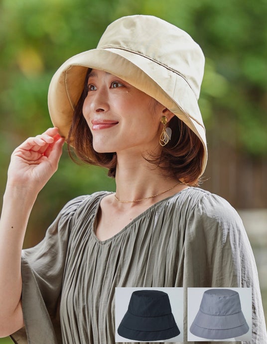 新色登場!深くかぶって紫外線もおしゃれにガード!「小顔魅せ目深にかぶれるUV帽子 ベージュ」発売中!