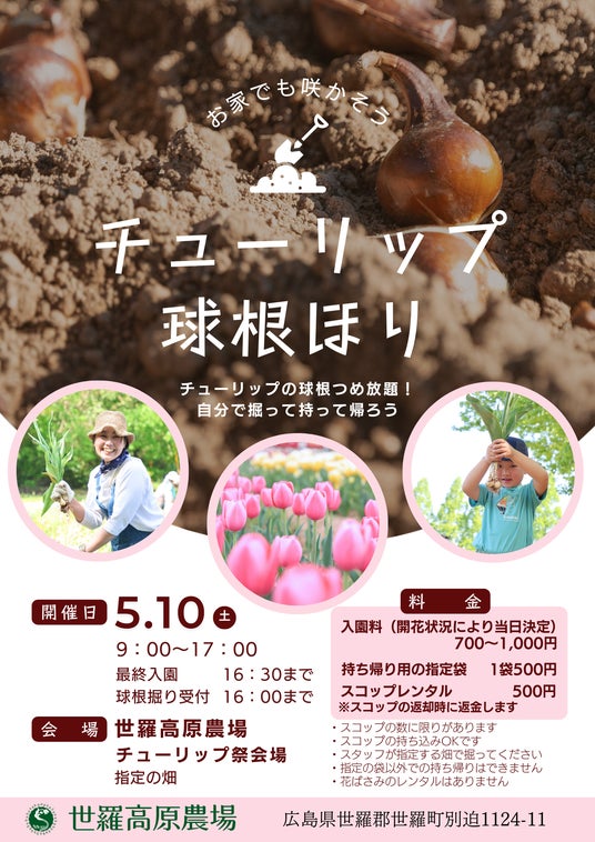 【広島/世羅】「チューリップ祭」の期間延長とチューリップの球根ほり開催《世羅高原農場》