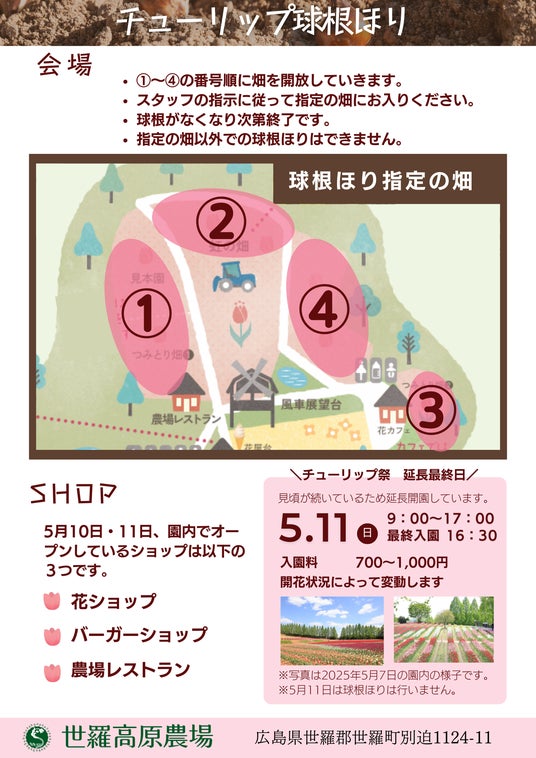 【開園時間】9:00~17:00(最終入園16:30まで、球根ほり受付16:00まで)