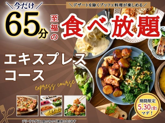 【コスパ最強!!65分充実の食べ放題!!】5/30迄!バラエティー豊かな食べ放題“ニラックスブッフェ”『45分』エキスプレスコースの『20分』拡大キャンペーンを開催!リーズナブルに食べ放題を楽しもう!