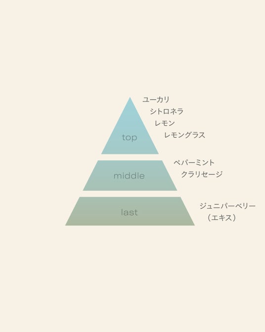 香り成分に精油と植物エキスを使用。ユーカリ、レモングラス、ペパーミントなどの涼しげで爽や