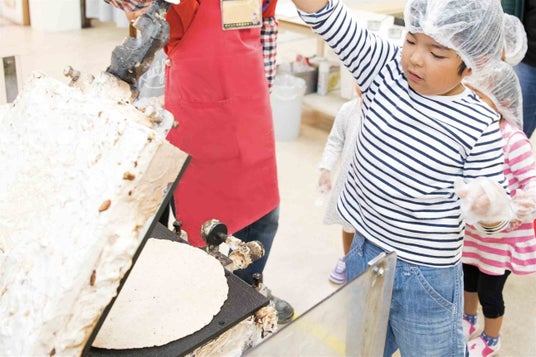 ・体験コーナーでえびせんべい作りができる。