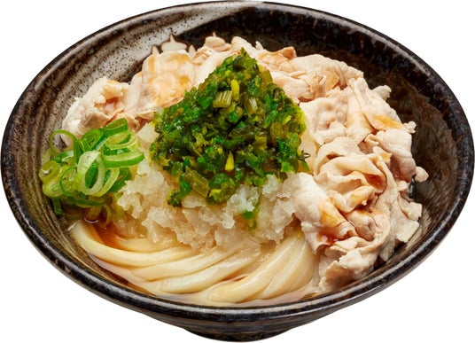 通常の約4倍の量の大根おろしを粗くすりおろし、シャキシャキとした食感とみずみずしさを活かしたサラダ感覚の冷たいぶっかけうどんです。彩りと香りが楽しめる3種のトッピング(柚子・柴漬・わさび)と、それぞれに豚肉を加えた全6種類をご用意しました。鬼おろしぶっかけには、粗くすりおろした大根おろし(鬼おろし)を使用しています。粗くすりおろすことで、通常の大根おろしより水分が出にくくなり、シャキシャキとした食感が残り、瑞々しいサラダのようにお召し上がりいただけます。