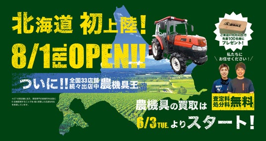 2025年8月1日(金)に中古農機具の売買専門店「農機具王」が、北海道小樽市に新たに店舗をオープンします。これまで北海道地域にはなかった「農機具王」の拠点として、地域の生産者様をサポートいたします。