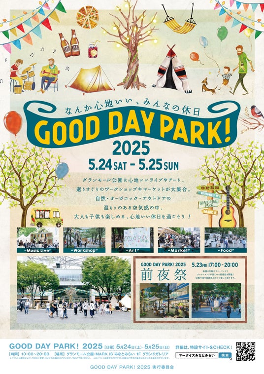 - 名称 :GOOD DAY PARK! 2025- 開催日時:前夜祭 5月23日(金)17:00~20:00 本開催 5月24日(土)・25日(日)10:00~20:00