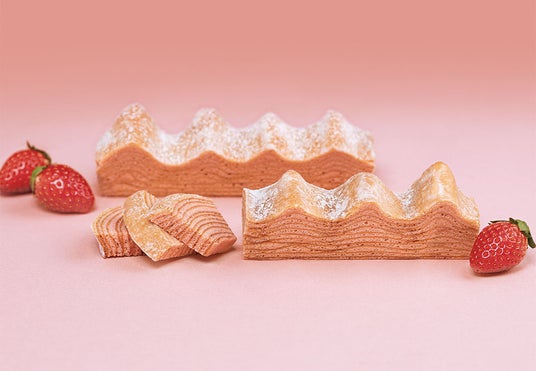 “とちおとめ”100%使用の苺ペーストを生地に練り込み、一層一層丁寧に焼きあげた春色の新作です。苺の味わいを引き立てるため、バターとの絶妙なバランスを追求しまるで“苺バター”のようなふくよかな甘味に仕上げました。また、ホワイトショコラをブレンドすることでまろやかでコク深い味わいに。ひとくちほおばると甘酸っぱい苺と芳醇バターの香りが広がる、春だけの味わいをお楽しみください。
