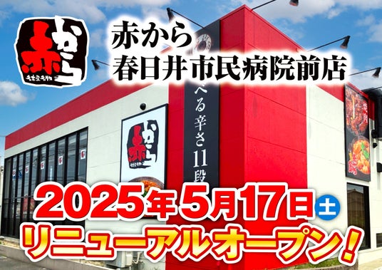 株式会社甲羅(本社:愛知県豊橋市、代表取締役社長:沼澤 裕)が展開する「赤から」は、2025年5月17日(土)に「赤から春日井市民病院前店」(愛知県春日井市)をリニューアルオープンします。