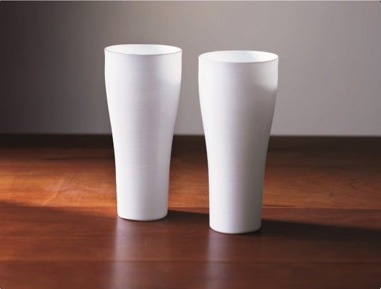 卵の殻のように薄いピルスナーカップ。驚くほどの軽さ、光を通すと飲み物が透けるほどの薄さに仕上げています。 厚さ1mm以下の飲み口ときめ細かな質感がもたらす、口あたりの良さを実感いただける商品です。