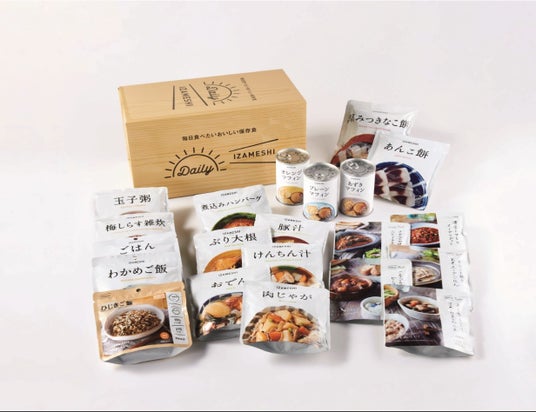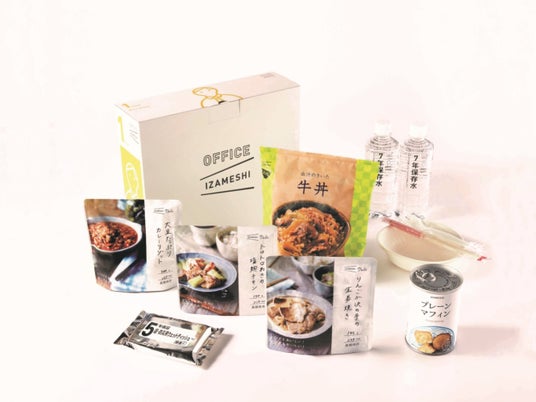 勤務中の災害で、情報収集、安全確認、帰宅まで社内待機する時間を1.5日と想定し満足感があるメニューの保存食5品と500ml水2本、1~1.5日その時間を安心して過ごせるだけ1人分をセットにしました。賞味期限は製造から5年、キャビネットやラックに収まるスマートなタイプ。いざという時に備えた保存食として最適です。味の面でも“日常的に食べたい”品質を追求し食べておいしい、からだに嬉しいメニューで、ガスや電気なしで簡単調理も可能なため、登山やサーフィンなどでの栄養補給にもオススメです。
