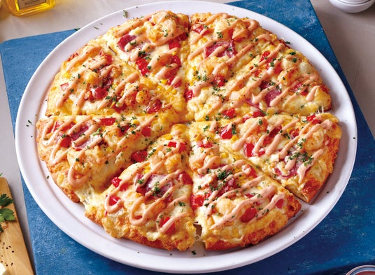 「もち明太子ピザ」…本場博多の明太子を使用した特製明太ソースで和えたポテトと、おもちの食感がクセになる!