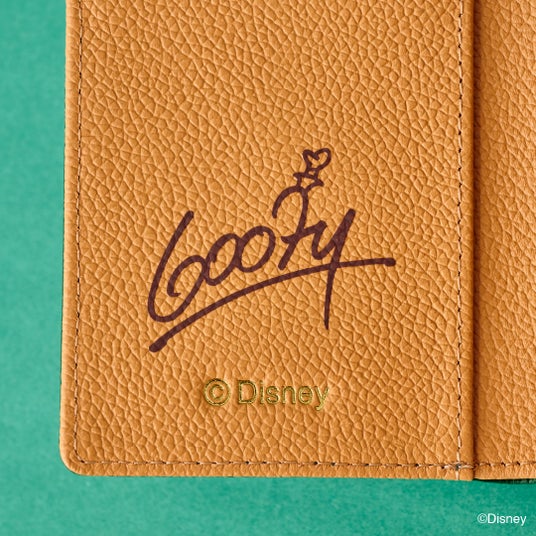 「グーフィー」をイメージしたグリーンカラーのレザーとオリジナル金具を施したデザイン。お財布の内側の「グーフィー」のサインプリントもこだわりのポイント。
