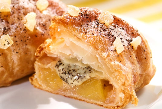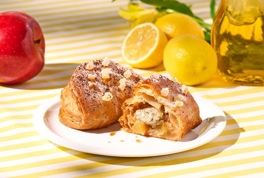 レモンの爽やかな香りと心地よい酸味が感じられる、レモンフレーバーのアップルパイです。試行錯誤を重ねた特製のカスタードクリームをたっぷりと注入し、酸味と甘味のベストバランスを実現。天面にはシロップ漬けの輪切りレモンをトッピングし、見た目にも爽やかさを感じられるよう仕上げました。梅雨の憂鬱さを忘れさせてくれる甘酸っぱいアップルパイをお楽しみください。